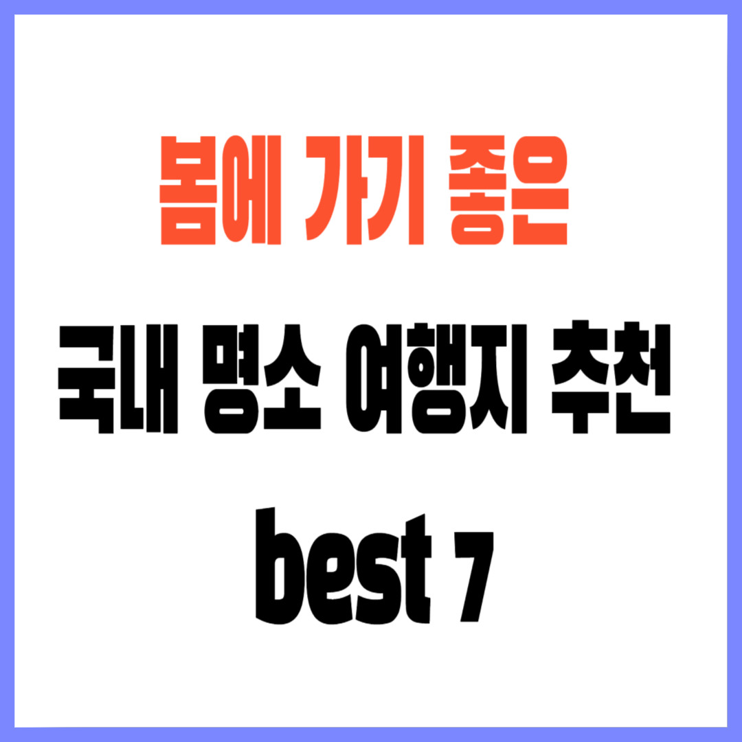 따뜻한 바람이 살랑거리고 꽃이 만개하는 봄, 어디론가 훌쩍 떠나고 싶은 계절입니다. 오늘은 봄에 가기 좋은 국내 여행지 TOP 7을 추천드리려고 합니다. 이 글을 읽고 나면 주말이나 휴가 계획이 한층 더 설레고 풍성해질 거예요!