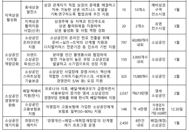 - 재난 및 위기 대응 지원: 자연재해 및 경기 침체로 피해를 입은 소상공인을 위한 특별 지원.
