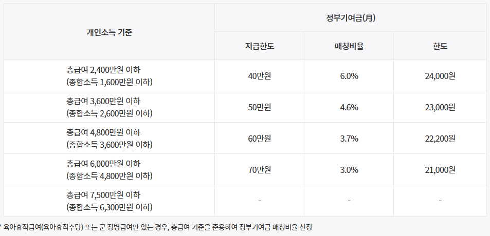 - 소득 조건 충족 여부 확인 필수: 소득 초과 시 가입 및 정부 지원이 불가능합니다.
