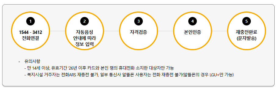 충전이 가능한 기간 내에 반드시 카드를 신청하거나 재충전해야 사용이 가능합니다. 기간을 놓치면 지원금을 받을 수 없으니 꼭 기한을 확인하세요!